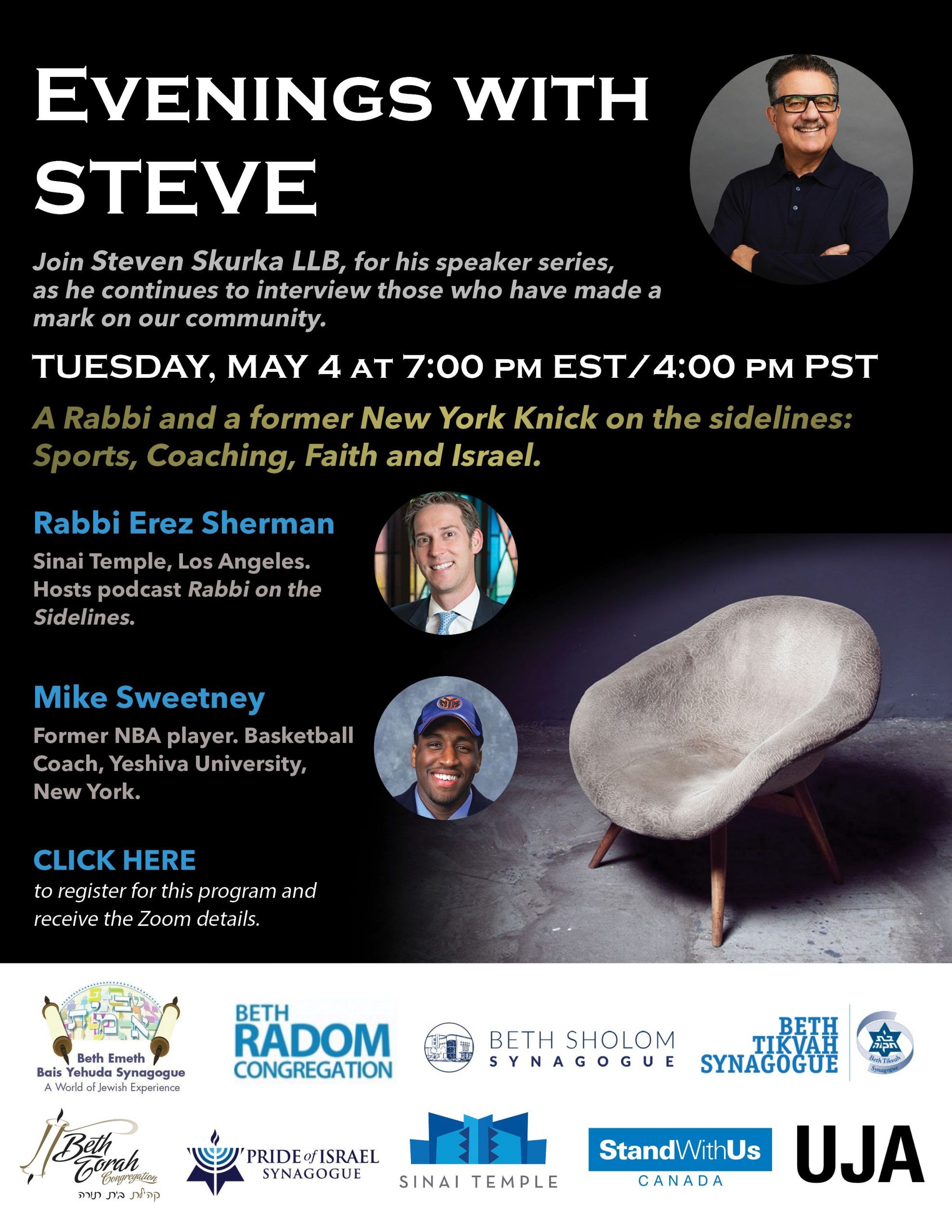 Join Steven Skurka, LLB, for his speaker series as he continues to interview those who have made a mark on their community. Rabbi Sherman will be one of the interviewees!